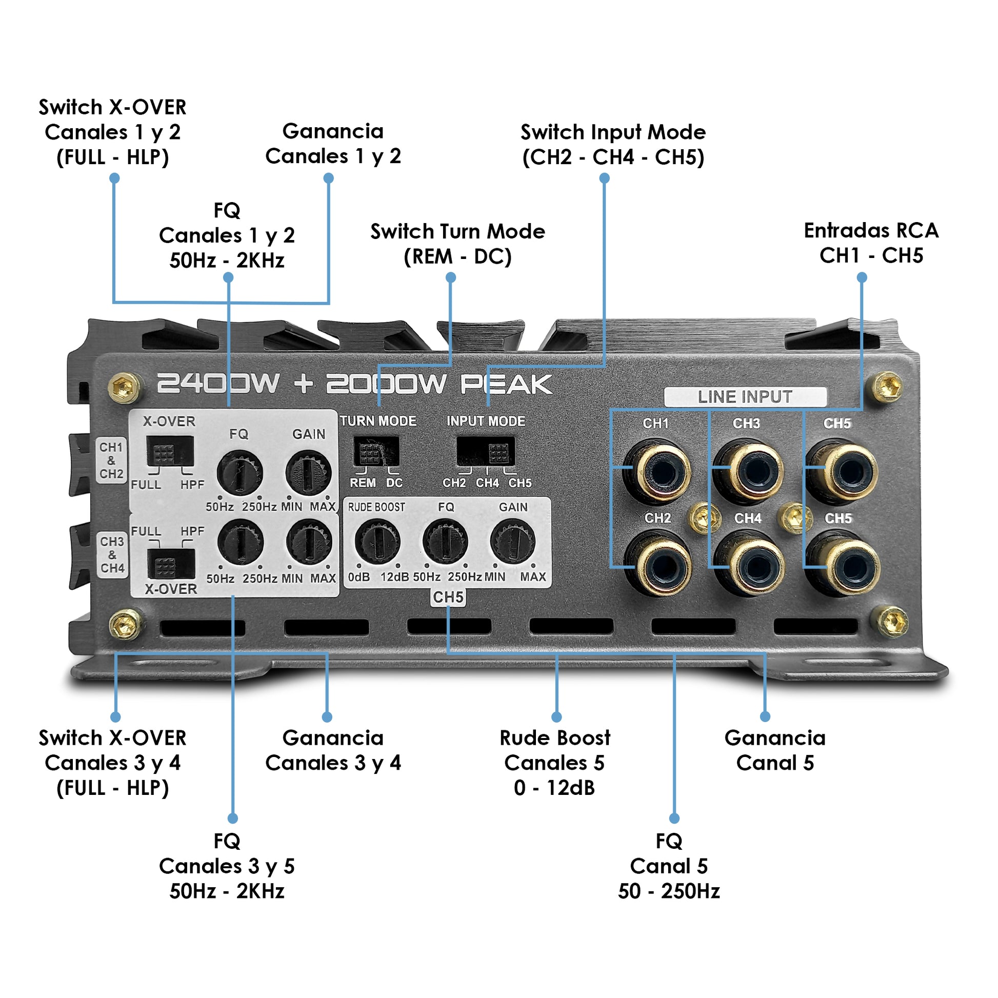 ✅Configuración flexible: Sus 5 canales te permiten una configuración personalizada para optimizar el sonido de cada componente de tu sistema, desde la voz más sutil hasta el bajo más profundo.