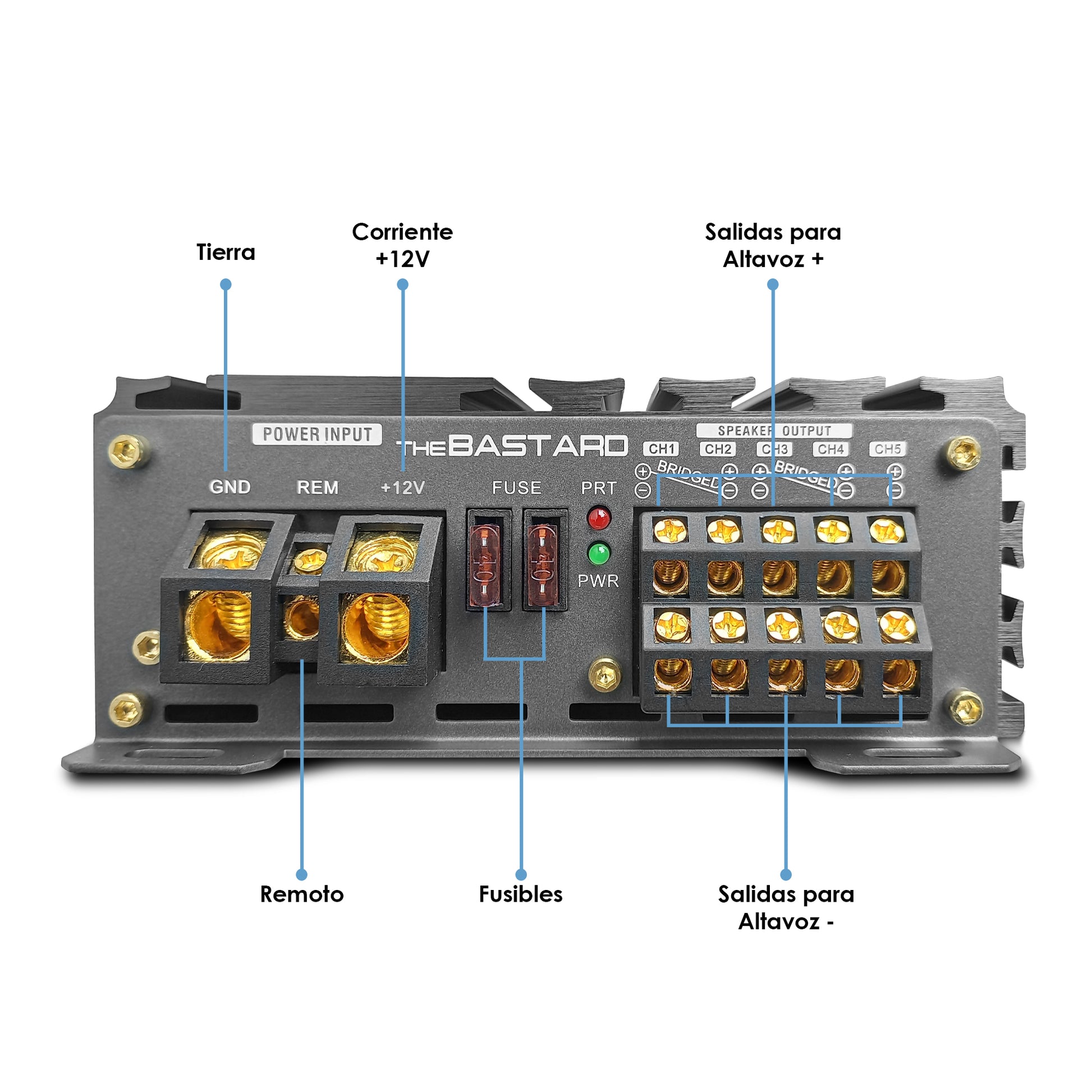 Este monstruo de la ingeniería de sonido está diseñado para transformar por completo tu experiencia auditiva. Con sus 5 canales, el Bastard te ofrece la versatilidad y la potencia que necesitas para alimentar tus bocinas, tweeters y un subwoofer, todo desde un solo dispositivo.