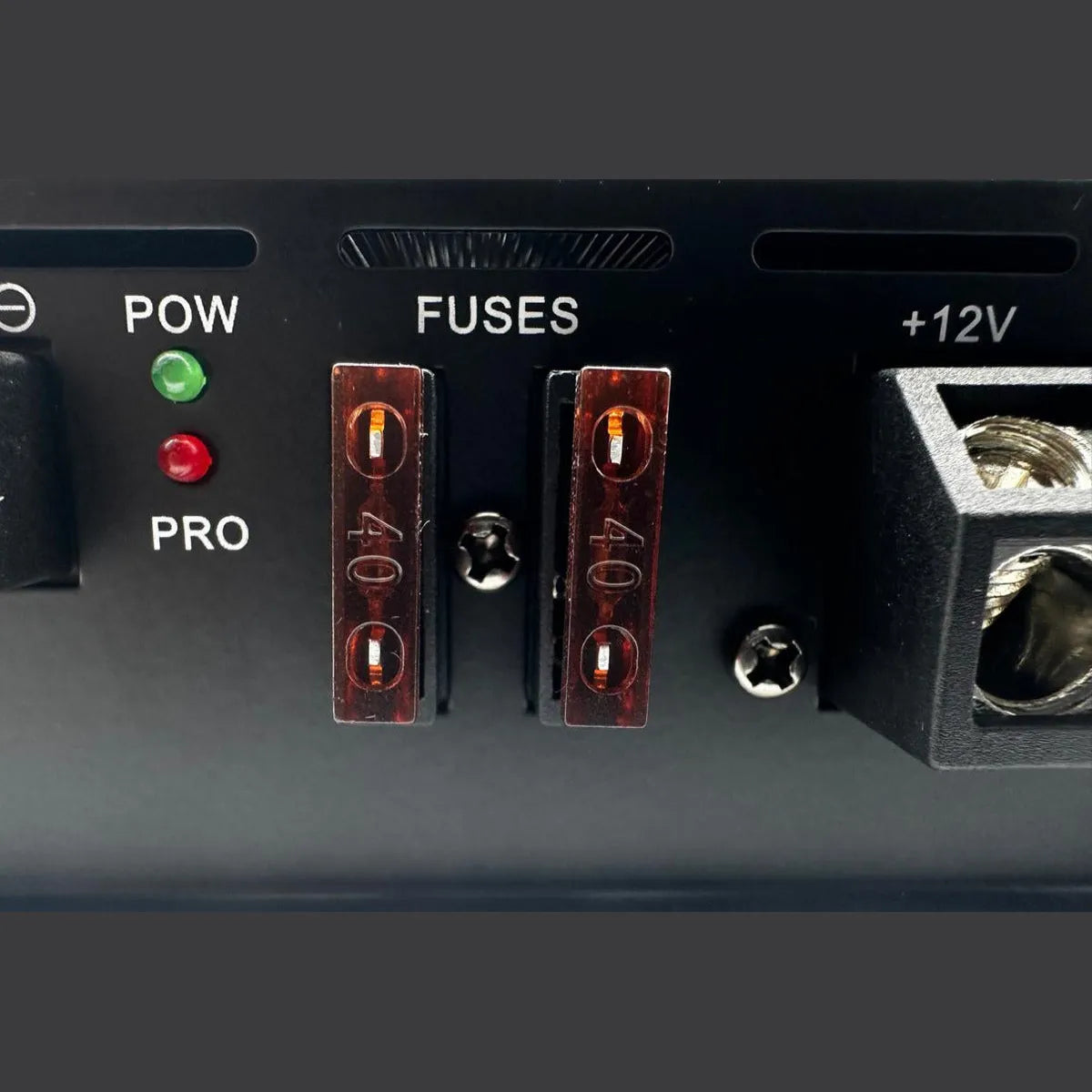 WRX-2500 1 Channel Class D Amplifier MAX POWER a 1 0HM: 1x1,250w MAX POWER a 2 0HM: 1x900w MAX POWER a 4 0HM: 1x600w MAX POWER a 16V: 2,500 w FREQUENCY RESPONSE:-THD: 10Hz-250Hz THD: <0.1% GAIN: 0.2V-6V S/N RATIO: > 92dB INPUT LEVEL: 10V-14.4V LPF: 50Hz-250Hz SUBSONIC CROSSOVER: 15-50Hz BASS BOOST: 0-12dB PHASE CONTROL: 0-180 Degrees PROTECTION SYSTEM: YES DIMENSIONS: 170 X 170 X 50 MM FUSES: 40A X 2