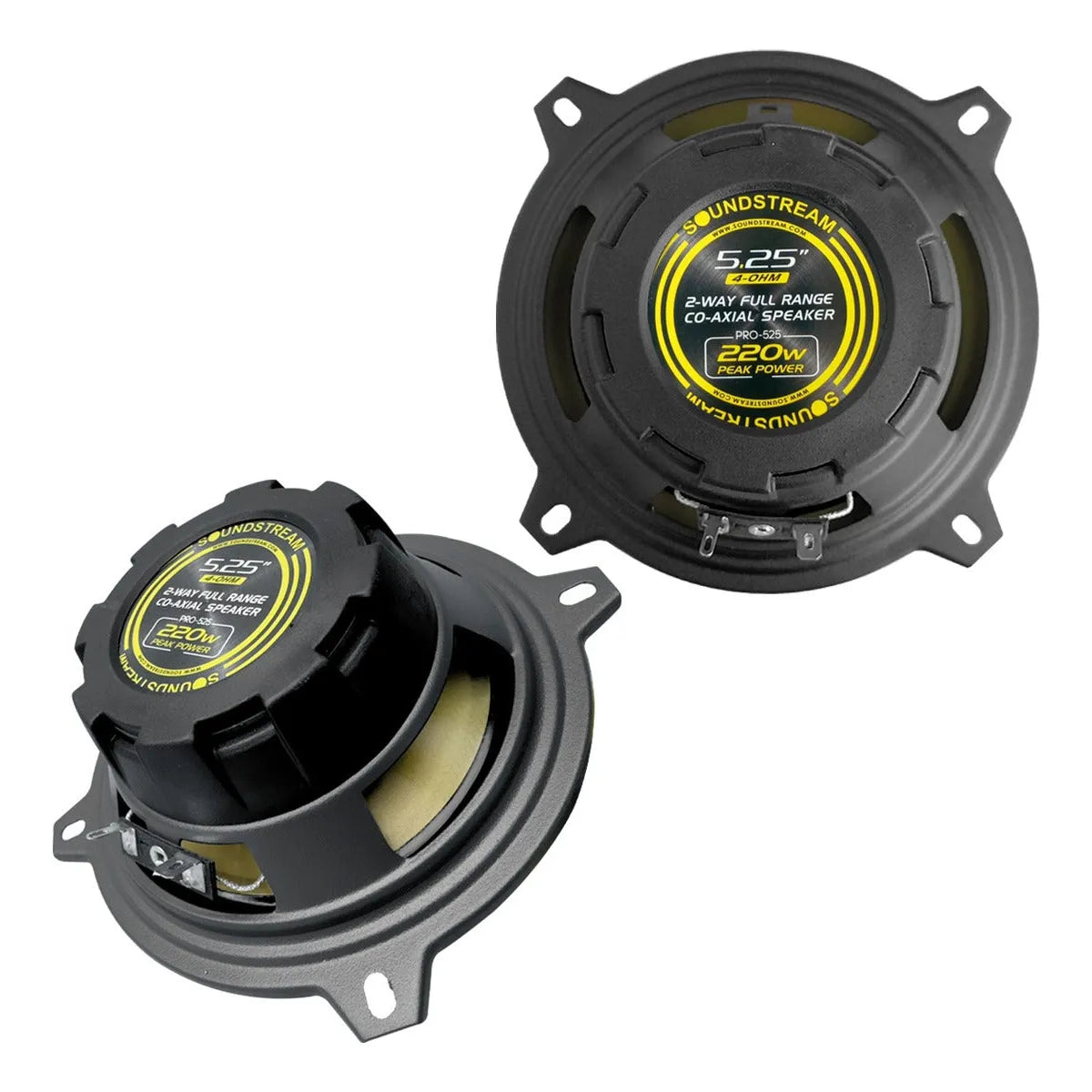 Soundstream PRO-525 Bocinas Kevlar PP Fibra Carbono Par de bocinas Coaxial 5.25" cono PP fibra de carbono Alta Fidelidad Agrega estos Altavoces coaxiales a tu sistema car audio para mejorar el sonido y disfrutar de tu música con mayor calidad, Soundstream estará contigo en los mejores momentos como la mejor opción a tu elección. El par de Bocinas Soundstream te brindará el tipo de claridad que nunca tuviste, con sus parlantes de 5.25 pulgadas y Tweeter Balanceado tendrás un sonido limpio y ponente para disfrutar todas tu música favorita. DISEÑO PENSADO PARA UN MEJOR RENDIMIENTO Cuenta con un diseño de 2 vías que te ayuda a recrea un sonido dinámico. ESPECIFICACIONES * Producto: PRO-525 * Marca: SOUNDSTREAM * Tamaño del altavoz 5.25" Coaxiales de 2 vias * Pico de Potencia: 220 W * RMS: 110W * Impedancia: 4 Ohms * Sensibilidad: 90dB/W/m * Tweeter de cúpula balanceada de 1.2" * Cono de IMPP de fibra de carbono --- SOPORTE TÉCNICO Y ASESORÍA DE INSTALACIÓN SIN COSTO ADICIONAL-- --- ENVÍOS A TODA LA REPÚBLICA MEXICANA Y CDMX --- --- FACTURAMOS SOLO EL DÍA DE LA COMPRA --- HORARIOS DE ATENCIÓN Y ENVÍOS -- LUNES A VIERNES 9:00AM - 6:00PM -- SÁBADOS 9:00AM - 2:30PM --- SOMOS LA MEJOR TIENDA EN LINEA CON LOS MEJORES PRECIOS DEL MERCADO ---