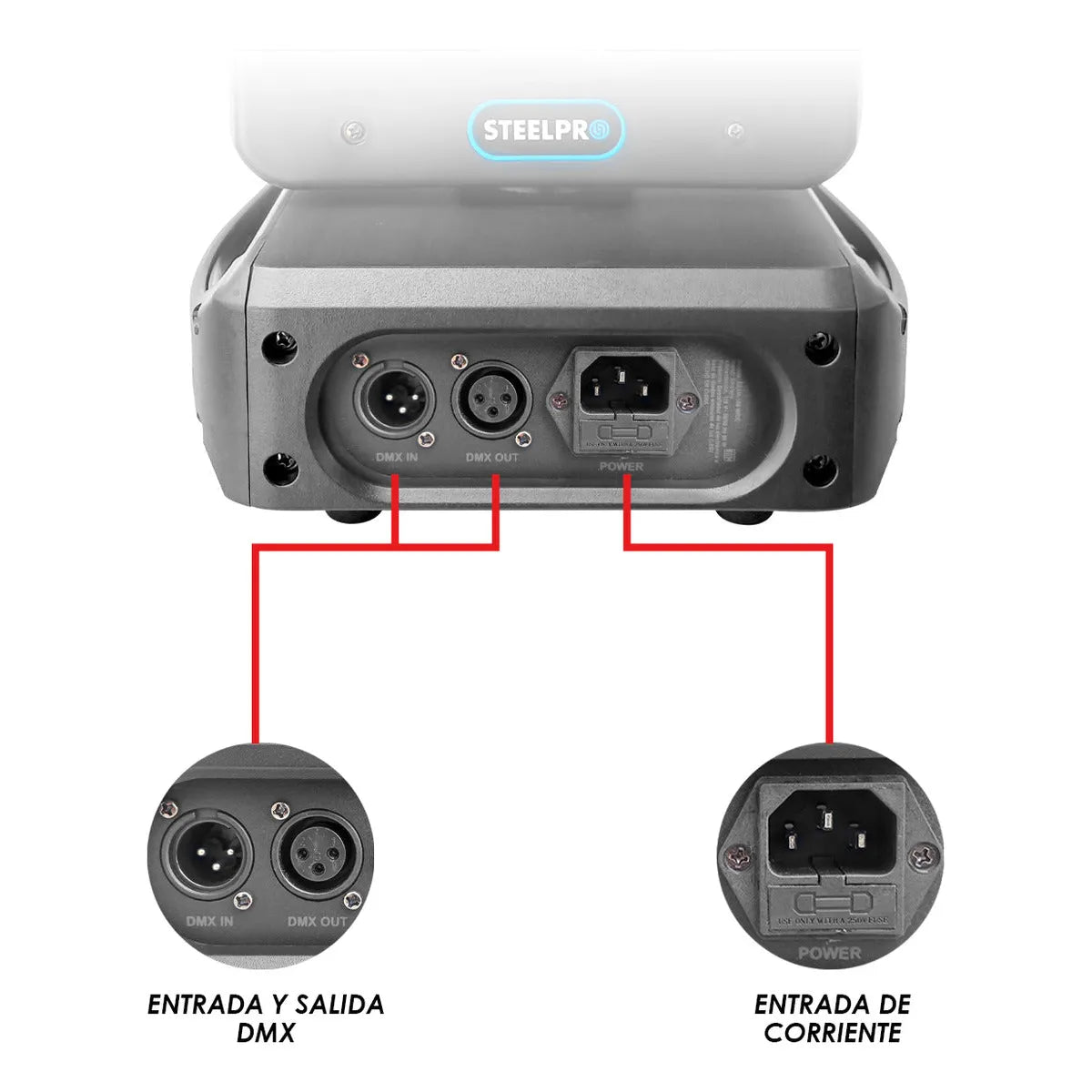 Cabeza Movil Led Beam 100W, RGBW By Steelpro CABEZA MOVIL LED BEAM DE 100 WATTS, MARCA STEELPRO! Mezcla de color: RGBW 4en1 Mezcla de color , genera múltiples variaciones de color • 4 modos de control estándar: compatible con DMX512, esclavo maestro, activación por sonido, control de funcionamiento automático. Cabeza con acabado premium de goma * Disco de 7 colores * Programación Integrada 17 canales * Excelente respuesta en gama de colores * Activación audio rítmica, pre programada, automática y maestro Esclavo * Servomotores de nueva generación de doble movimiento * Cambio de colores y velocidad ajustables * Paneo 540° * Tildeo 270° de rápido movimiento * Conectores XLR 3 IN * Patas de Goma anti deslizantes para mayor soporte * Efecto Estrobo * Dimmer variable vía DMX 512 * Ventilador Integrado * Pantalla tipo LED de fácil programación * Rotación continua de color * Botón de apagado y encendido Incluye Tornillería Cable DMX Cable de alimentación Bracket de montaje Manual en Español Envíos a toda la República Mexicana. Facturamos sin costo el día de la compra. Horarios de atención y envíos: Lunes a viernes a partir de las 09:00 - 18:00 pm. Sábados a partir de las 09:00 a 14:30 pm. STEELPRO ¡El mejor precio!