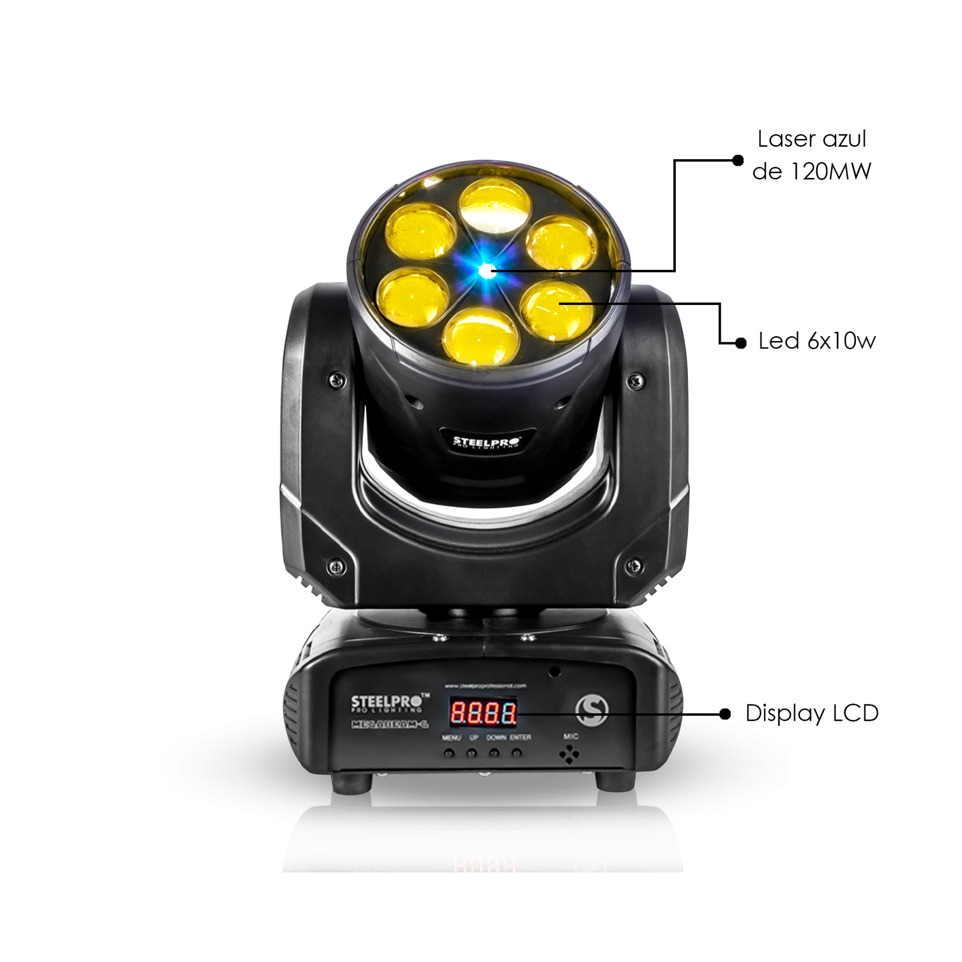 Cabeza Robótica Rgbw Full Power 4 En 1+ Laser Azul Steelpro