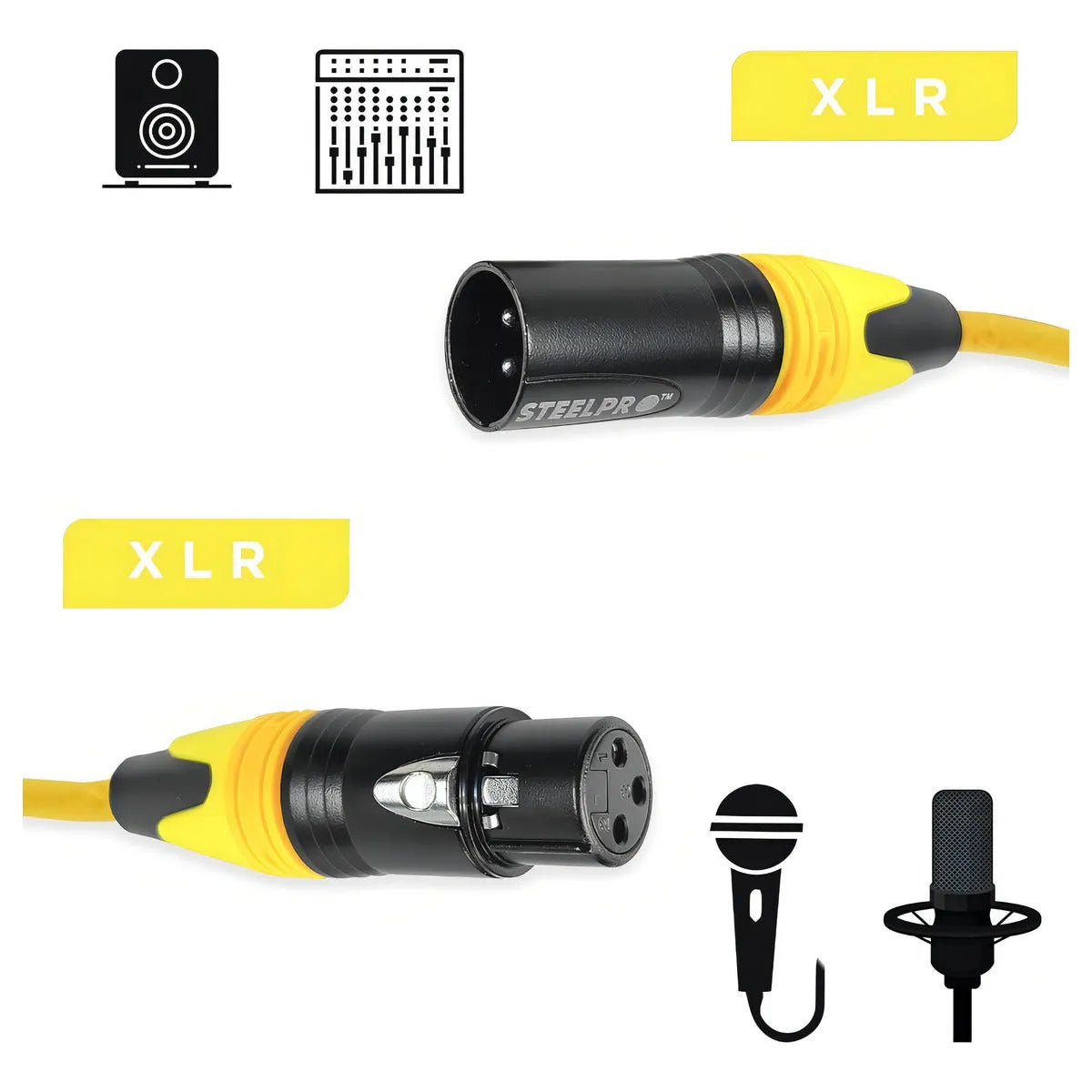 Cable Xlr 2m Balanceado Steelpro Xlr-yll-2m Plug-jack Profes