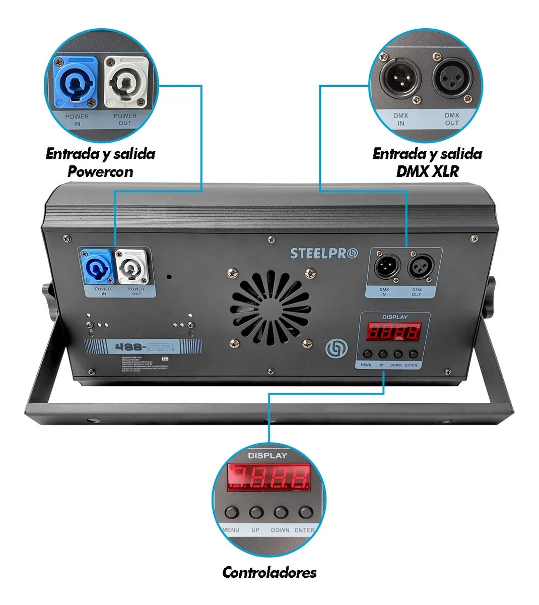 Case 4 Estrobo Profesional 960 Led Rgb+ Estrobo Dmx Steelpro