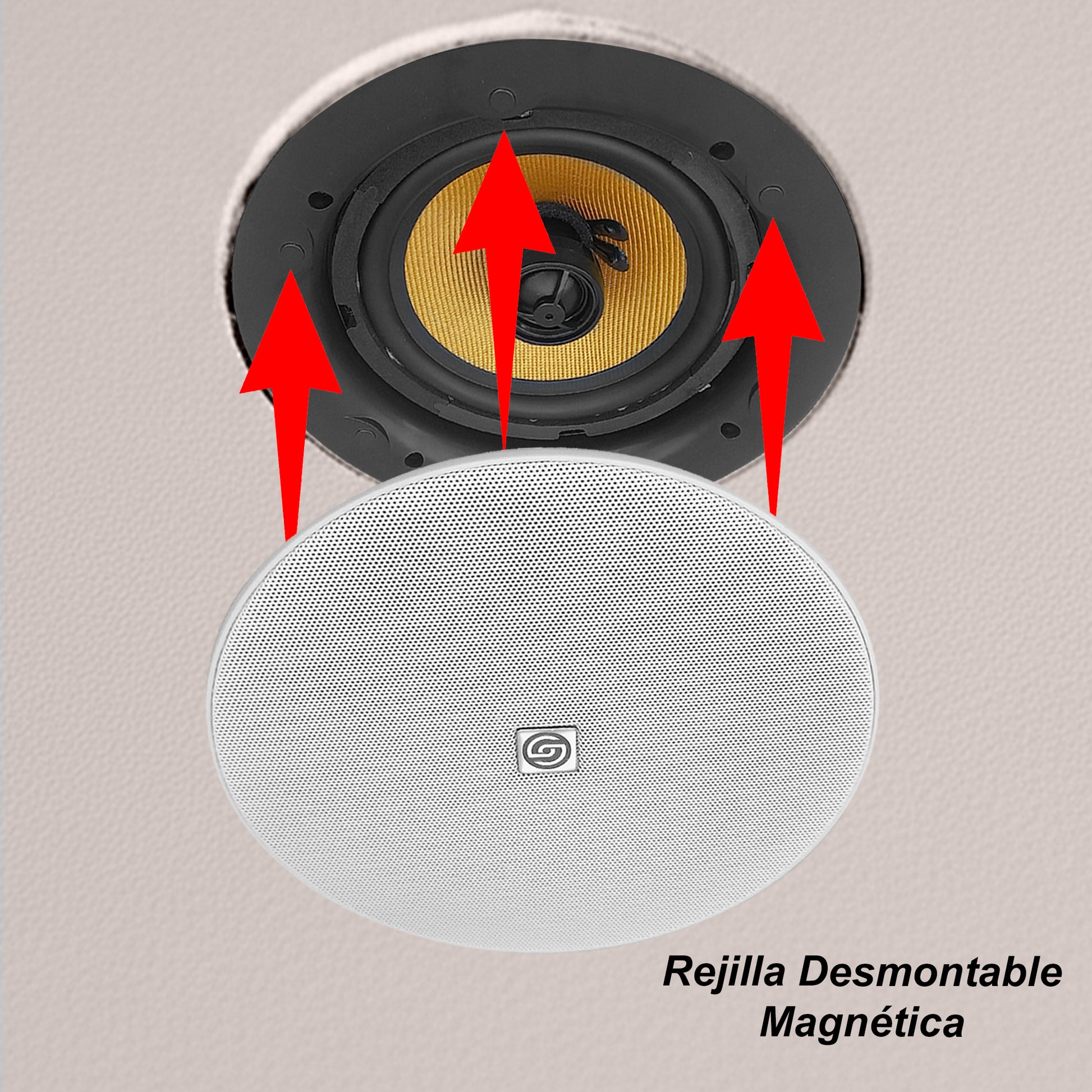 Bocinas Pasivas para Plafón con rejilla ANTICORROSIÓN DESMONTABLE MAGNÉTICA y Tweeter de Titanio 1'' Domo de Seda diseñadas especialmente para ofrecer un sonido envolvente y de alta calidad.