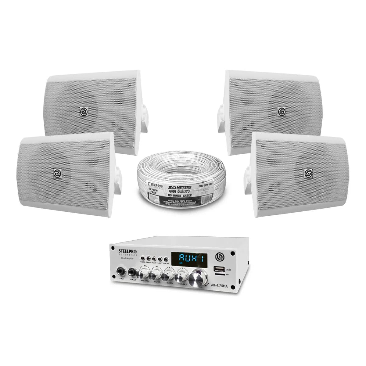 Kit Amplificador Bt 300w 4 Bafles Ambiental 6.5 By Steelpro