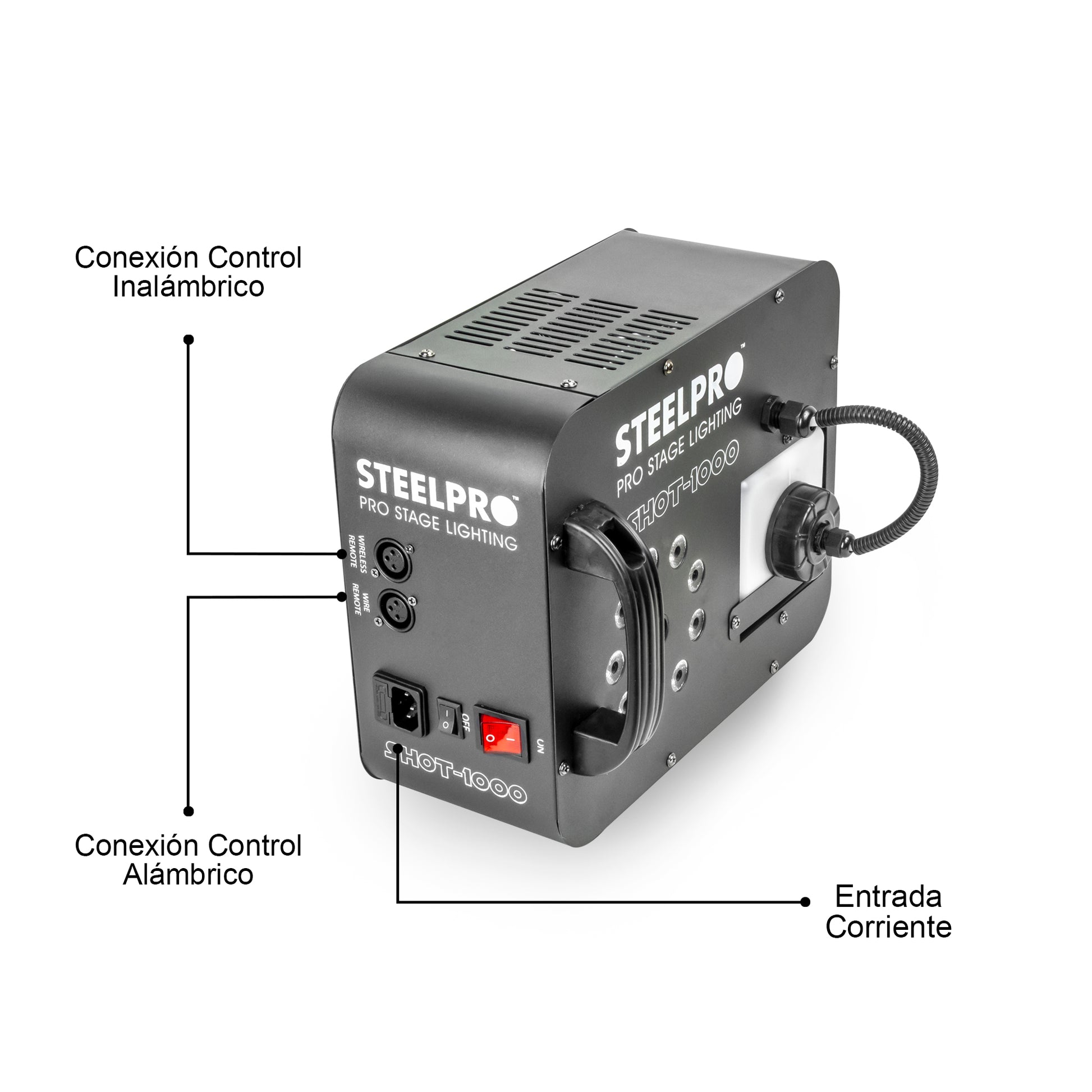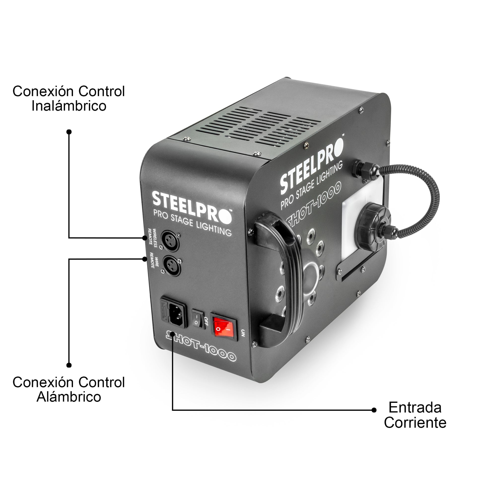 Maquina De Humo Steelpro Shot-1000 1000w 9 Led Rgb Automática 110v Negro