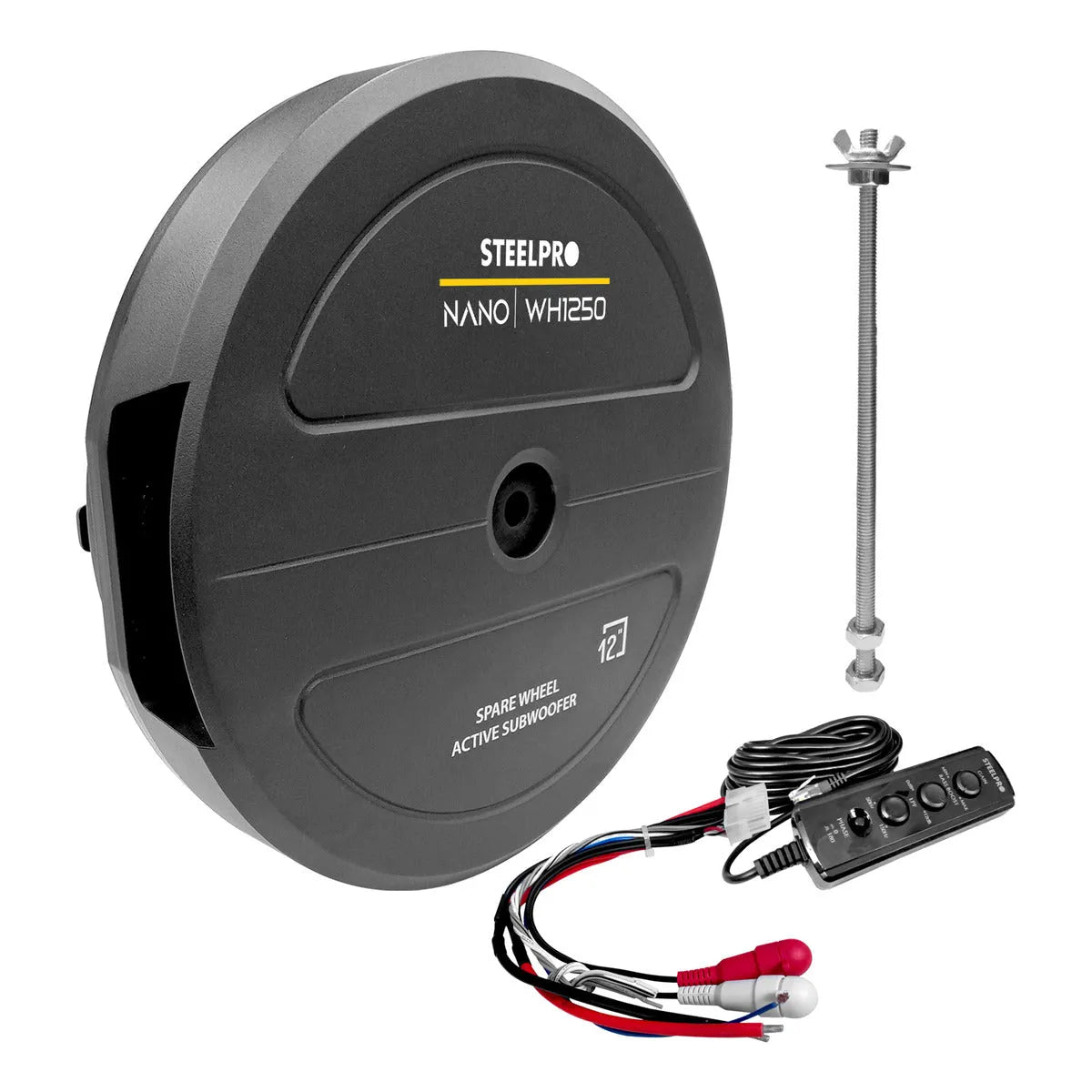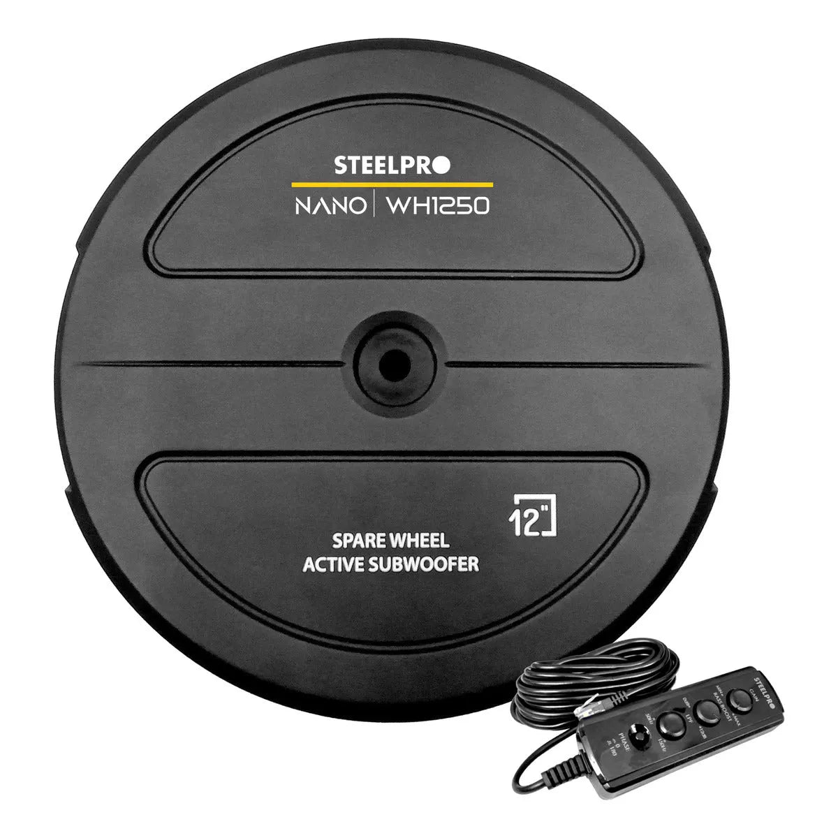 Subwoofer Amplificado 12 PuLG Llanta Repuesto Nano Steelpro Color Negro